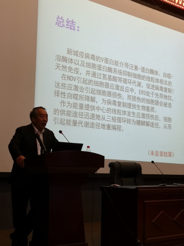 在本次报告中,丁铲教授向广大研究生及本校教师详细讲解了有关新城疫病毒在免疫过程中的研究及其相关机制,内容详实,思路严谨,体现了其极高的专业水平和科学素养。同学们深受启发,深刻体会到如何从研究中发现问题,寻找科学领域中重要问题的答案。