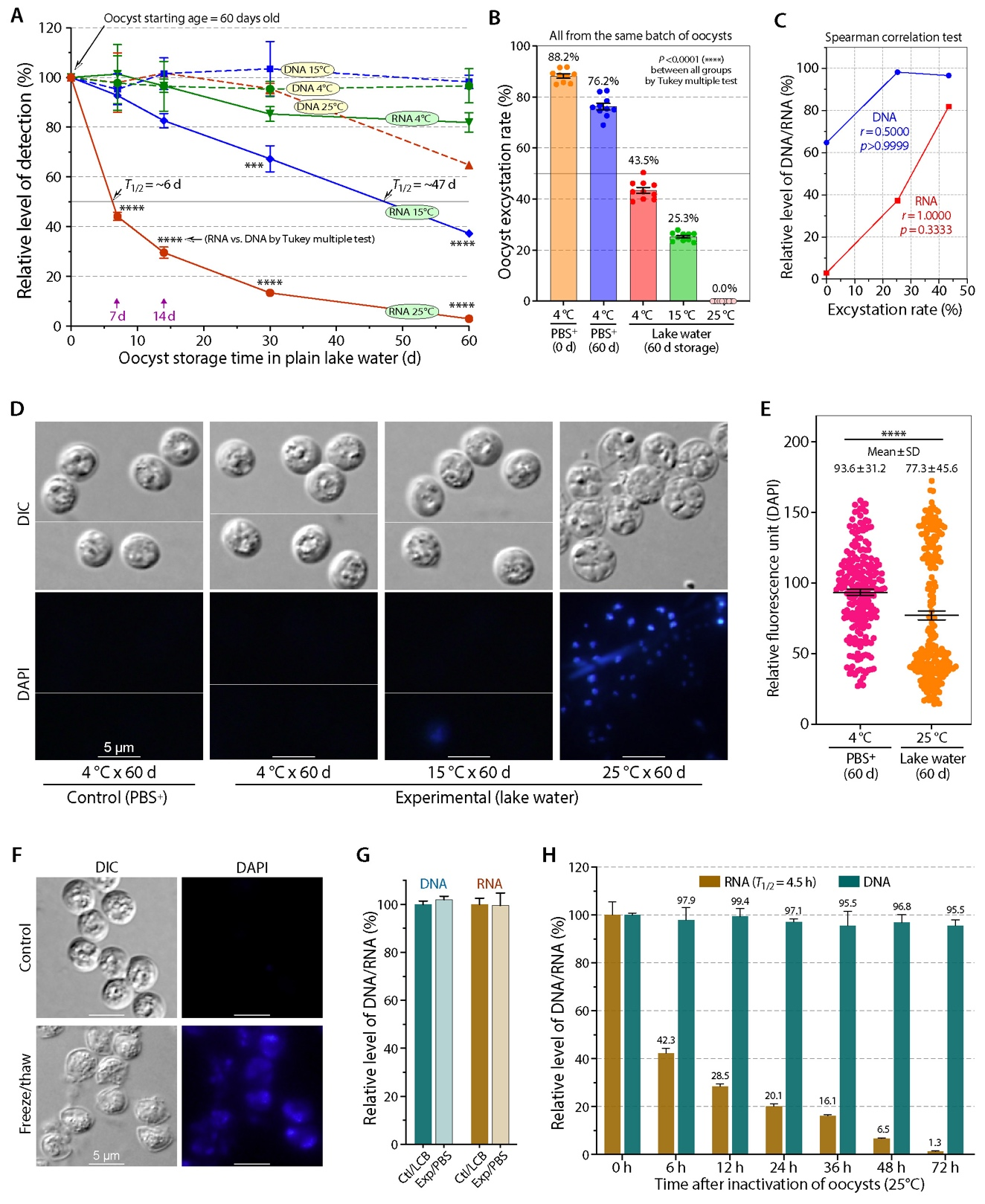 隐孢子虫卵囊可在失活后数周内保持形态和DNA,但RNA可在失活后迅速降解