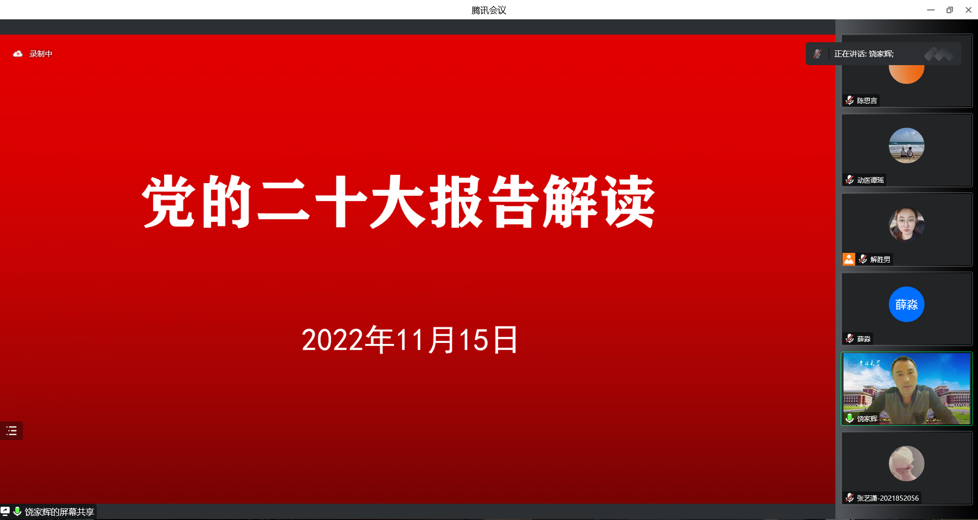 党委通过腾讯线上会议举办2022年第二期入党积极分子培训班开班仪式暨党委书记专题党课活动。学院党委书记饶家辉、党委副书记兼副院长谭瑶、党务秘书解胜男和2022年第二期全体入党积极分子参加了此次会议。会议由谭瑶副书记主持。