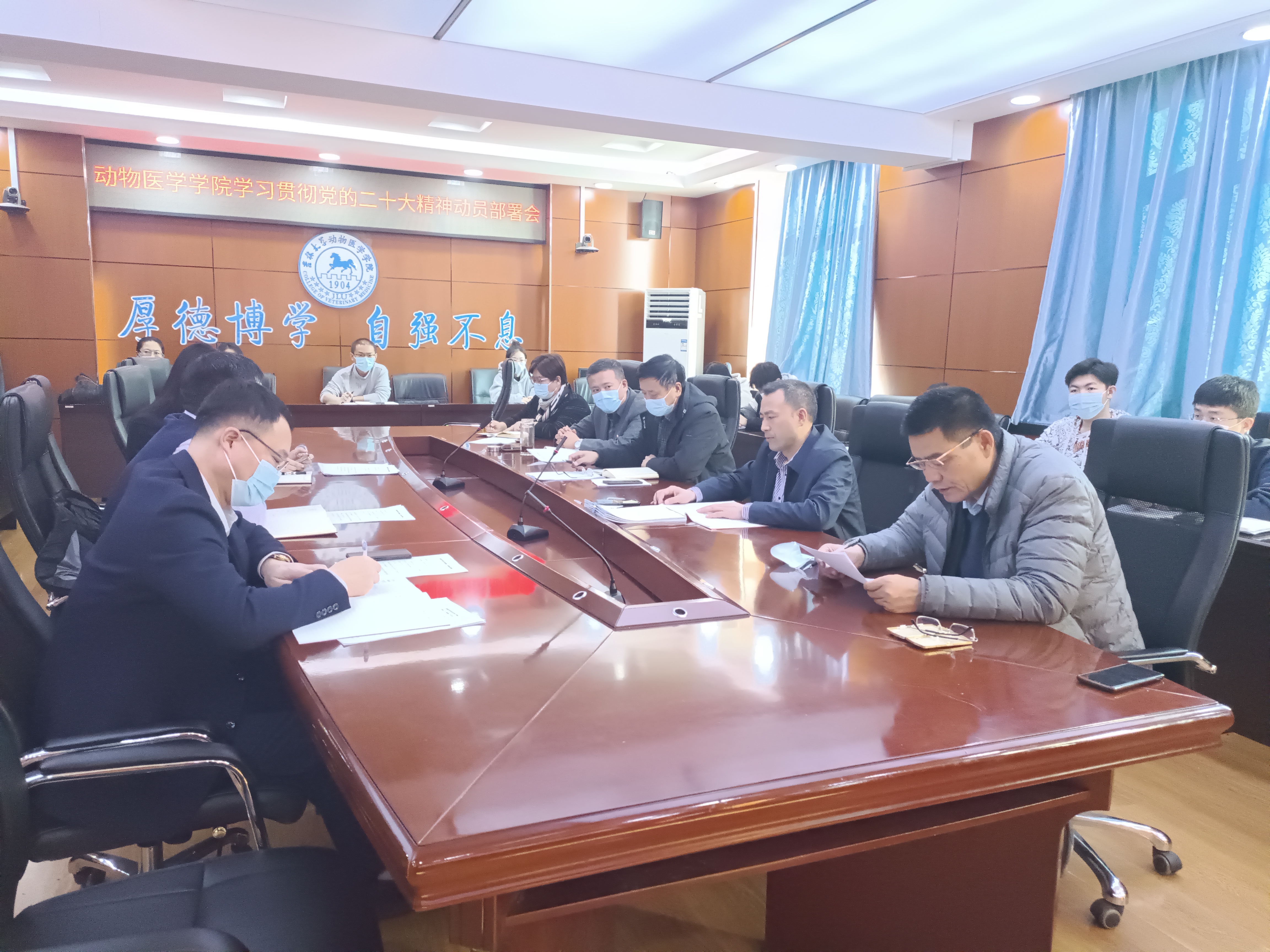 召开学习贯彻党的二十大精神动员部署会,学院领导班子成员、各系中心主任、动物医院和仪器平台负责人以及学院全体党支部书记参加了会议,会议由学院党委副书记、纪委书记秦明同志主持。