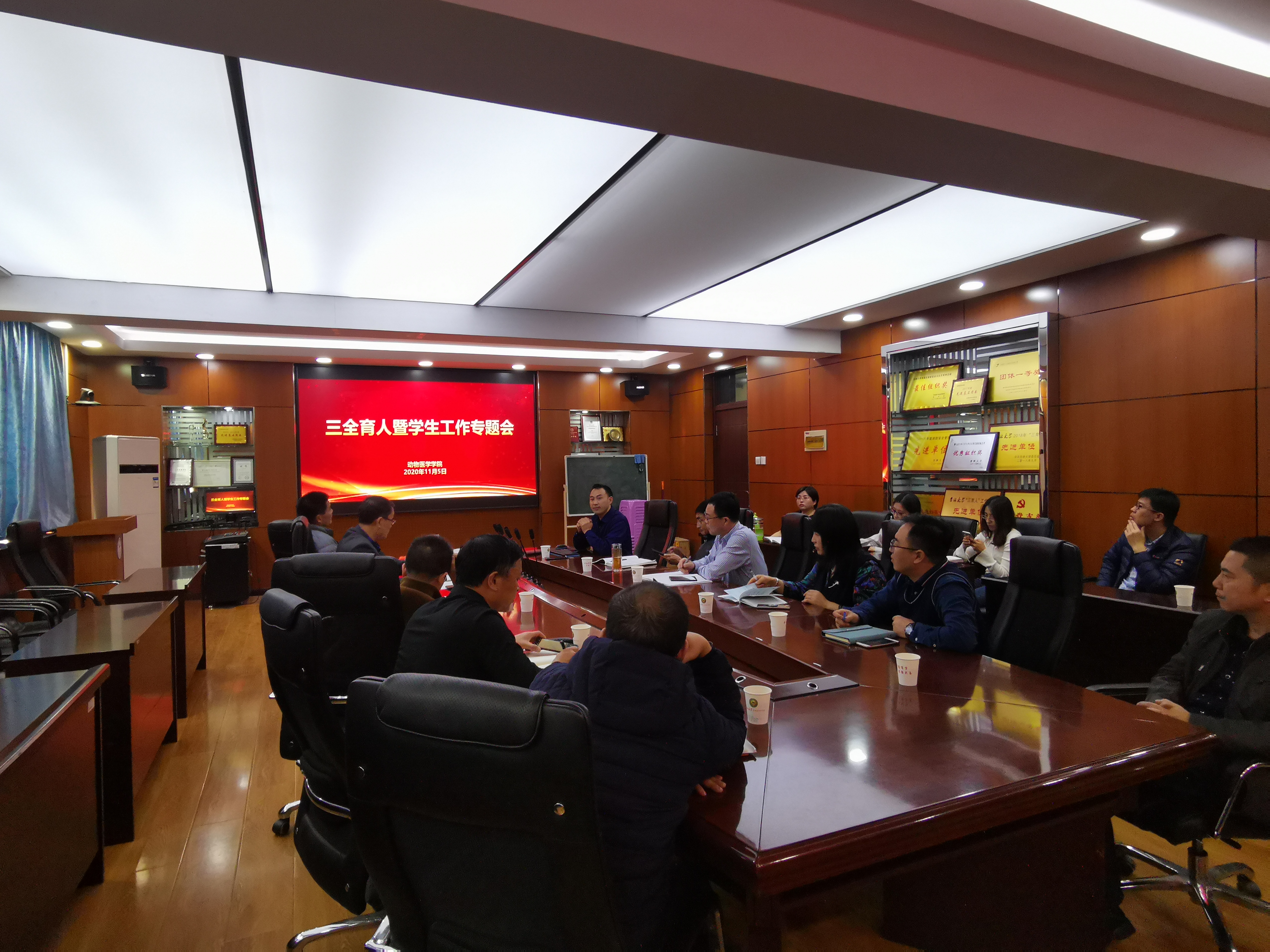 在专题会上,刘明远院长表示,学院近几年育人工作取得较好成绩,特别是学生就业率、读研率持续提升,生源质量持续向好。全院要继续发扬“德为先、师为魂、生为本”的育人理念,把学生培养好、把学科建设好、把氛围营造好,致力培养更多的世界一流兽医人才,为国家和世界兽医事业发展做出更大的贡献。