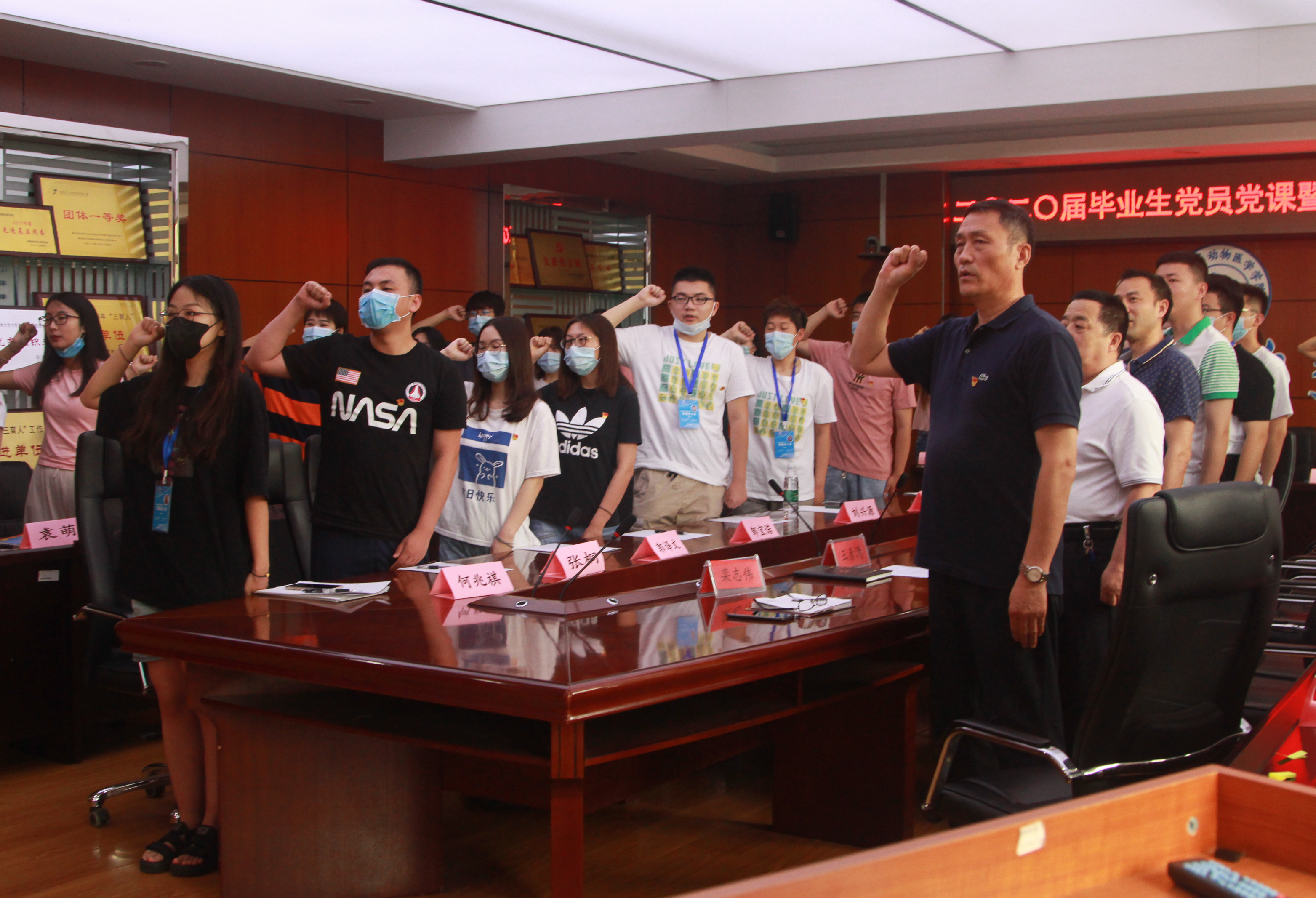 在综合楼三楼会议室举办二〇二〇届毕业生党员党课暨重温入党誓词仪式。学院党委书记王彦清,副书记栾志伟、饶家辉,以及全体毕业生党员参加了此次会议。