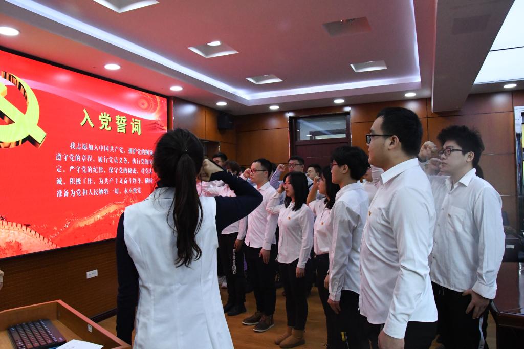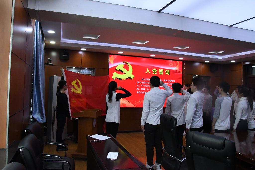 入党宣誓仪式”在学院三楼会议室隆重举行。参加此次活动的有学院党委副书记栾志伟、学院党委办公室主任周靓以及19名新党员。