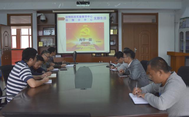 动物科技实验教学中心(动医分中心)党支部开展“两学一做”第三专题学习教育活动。参会人员有实验教学中心杨举书记,成军副书记等10名党员。会议在杨举书记的主持下顺利进行。