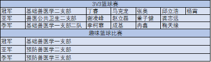 随着一声哨响,篮球赛正式拉开帷幕,队员们气势如虹,每一位参赛选手都斗志昂扬,在场上你争我夺、你攻我守,比分交替上升,难分高下,最后基础兽医学二支部凭借严密的防守和精准的进攻取得了胜利。