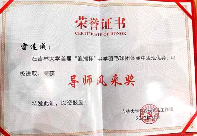 雷连成老师荣获“导师风采奖”,酷爱成人网
