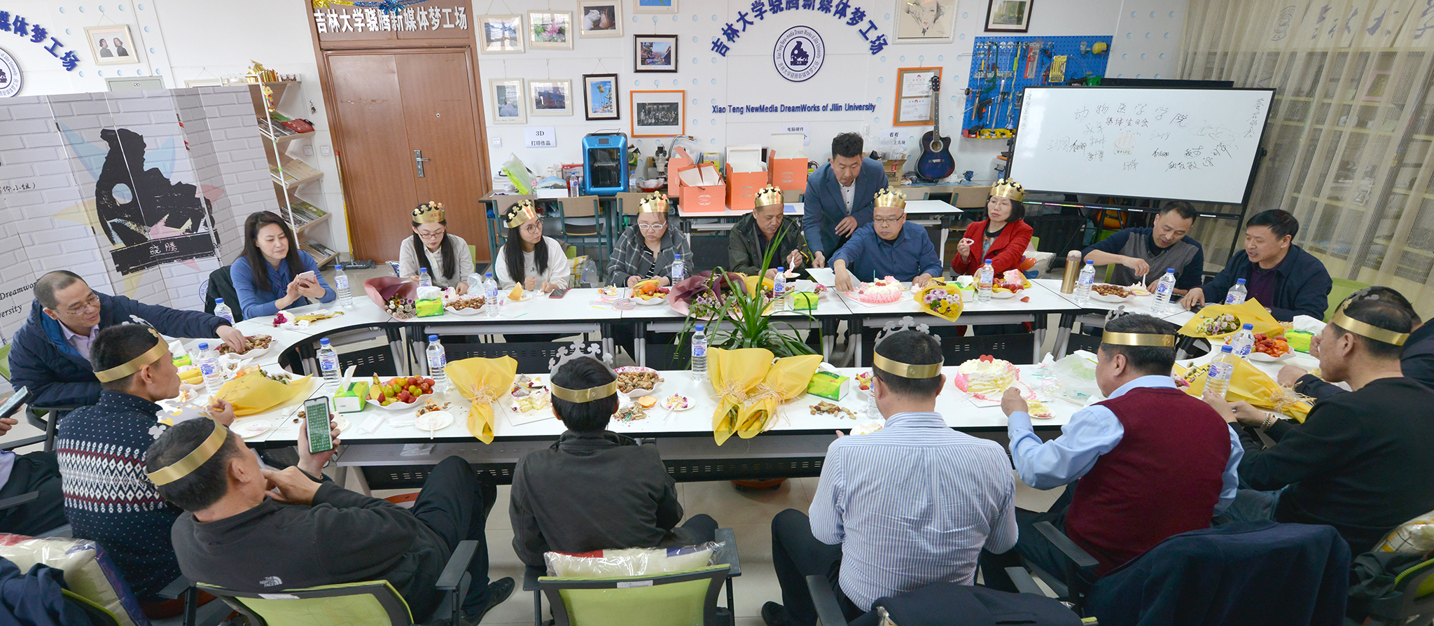 工会组织第二季度过生日的全体教职工在实验教学中心五楼“骁腾新媒体梦工場”举办了首届集体生日会,自此,拉开了每季度为教职工过集体生日的序幕。 酷爱成人网