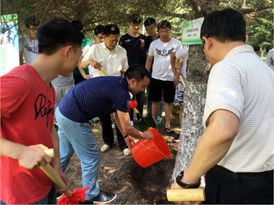 随后,院领导和毕业生们纷纷拿起铁铲为纪念树培土、浇水。 认领仪式在大家的汗水与笑声中有条不紊的进行着。毕业生在寄托了对母校感情的同时,也为校园绿化贡献了力量。很多同学表示,在毕业离校之际认领一棵树木对自己有特殊的意义,一是寄托感情,在母校留下值得回忆的烙印,二是寄托志向,勉励自己在工作要努力奋斗,像茁壮成长的树苗一样为吉大添色。 此次认领活动对2016届所有毕业生而言,是一次难忘的经历。通过认领树木,种下对母校的怀念与感恩,种下我们绿色的希望。每一株树木,将成为一种独特的纪念,她将见证莘莘学子的成长印迹,传承对母校的殷切情怀。