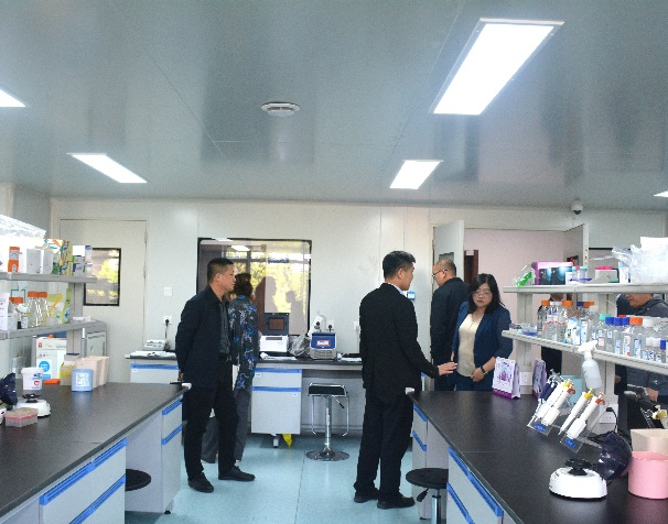 最后,陈先国副所长一行随王化磊副院长实地参观了学院人兽共患病研究教育部重点实验室。在参观人兽共患病研究教育部重点实验室时,王化磊副院长向各位领导介绍了学院重点研究领域、研发团队、成果转化等。