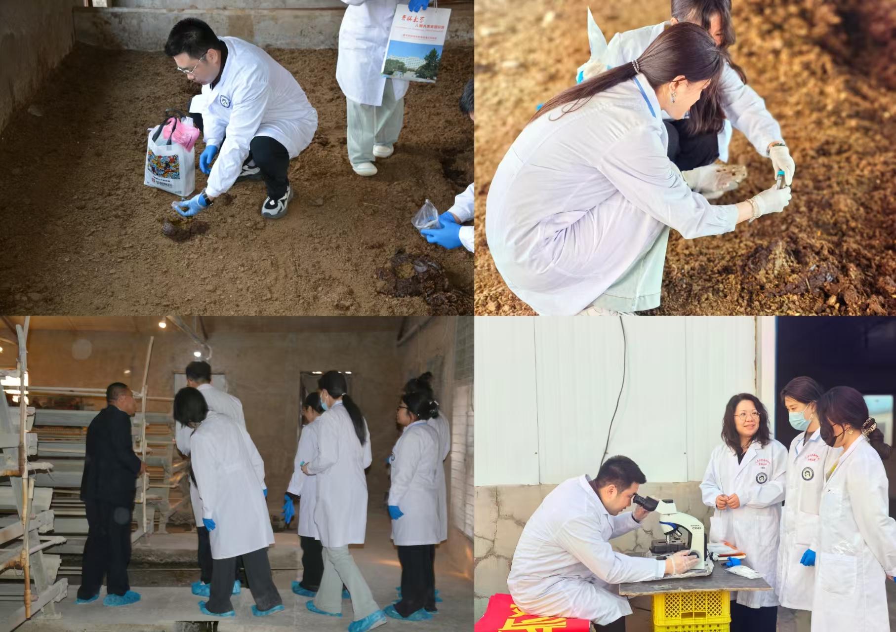在实践交流过程中,企业展示了养殖场日常运营情况,包括饲养管理、饲料配比、疾病防控等生产过程,并着重介绍了其中需要特别关注的关键环节、具体案例。随后,同学们与基地技术人员展开深度协作,在严格遵循生物安全规范的前提下,深入鸡舍和牛栏,进行了病料采集工作,老师们同步开展了现场病原快检示范教学,使研究生们对病症和病原的溯源机制与传播规律有了更系统的认知。