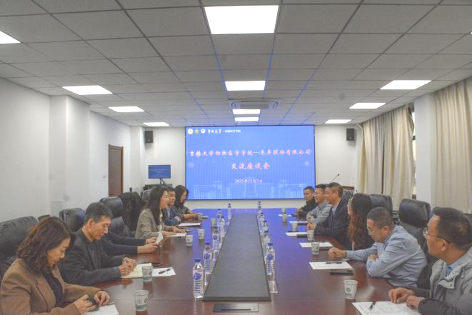 与禾丰股份有限公司在人畜共患传染病重症诊治全国重点实验室七楼会议室举行座谈交流会。禾丰股份有限公司副总裁邸国、龙吉区人力资源总监赵硕、吉林反刍事业线销售总经理严世帅;动物医学学院院长李建华教授、副院长王化磊教授、副院长邱家章教授、冯新教授、雷连成教授、李赫研究员参加了座谈交流,会议由王化磊副院长主持。