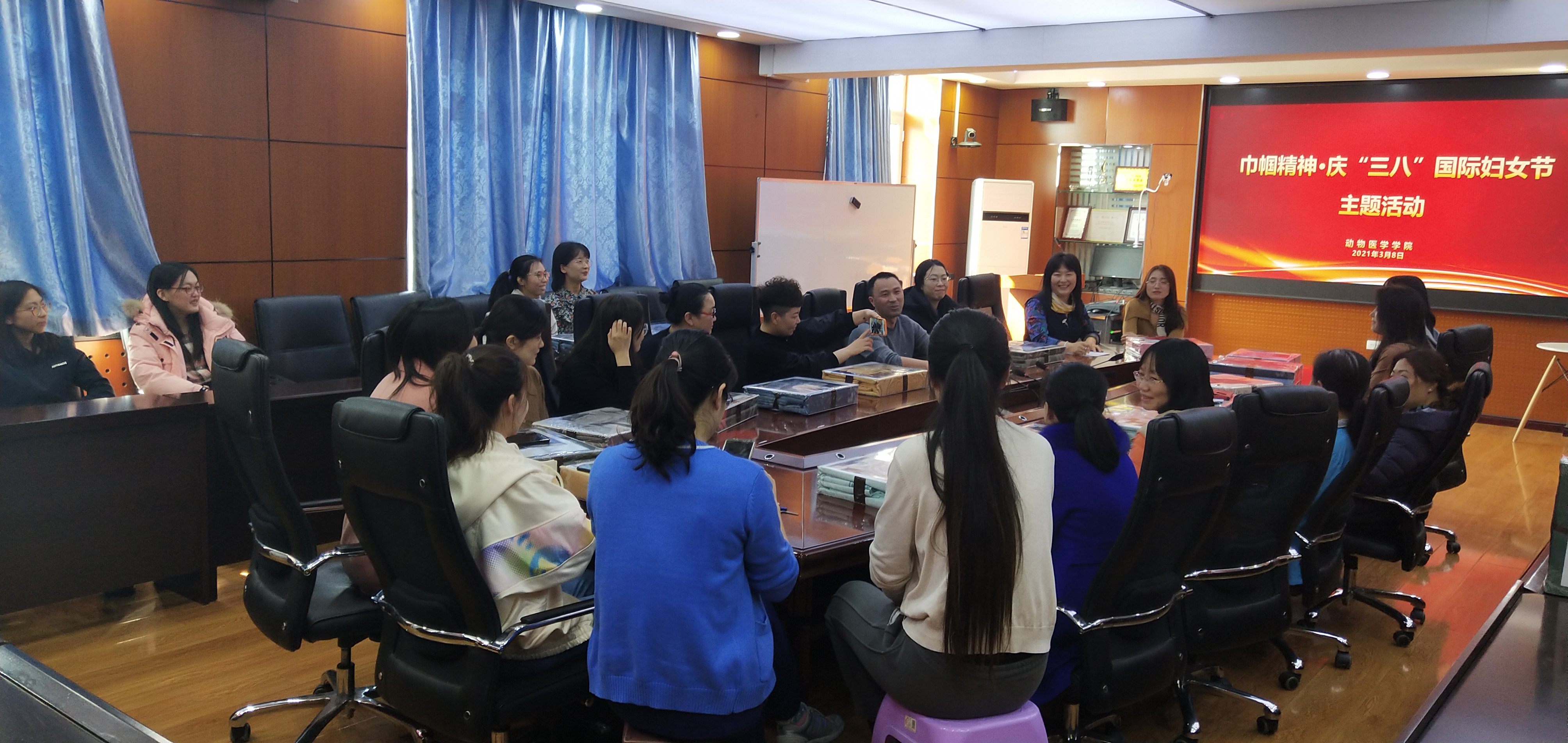 全体女职工在三楼会议室召开了“巾帼精神”庆“三八”国际妇女节主题活动座谈会。学院党委副书记饶家辉同志参加了座谈,座谈会由学院妇委会主任张巧灵教授主持。